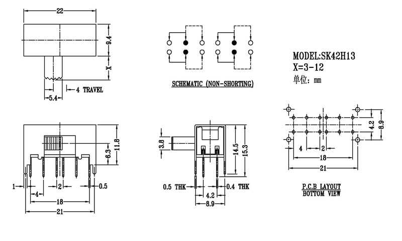 使用功率/額定值Rating:DC 50V 0.3A~1A 觸點電阻/Contact Resistance:< 100 mΩ 絕緣電阻/Insulation Resistance:≥ 100 MΩ 耐壓/Withstand Voltage:500V AC for 1 minute 使用壽命/Life cycles:10000次 操作溫度/Operationg Temperature:-16℃to+60℃ 儲存溫度/Storage Temperature:-40℃to+85℃ 符合標準/Complies with:RoHs&Reach