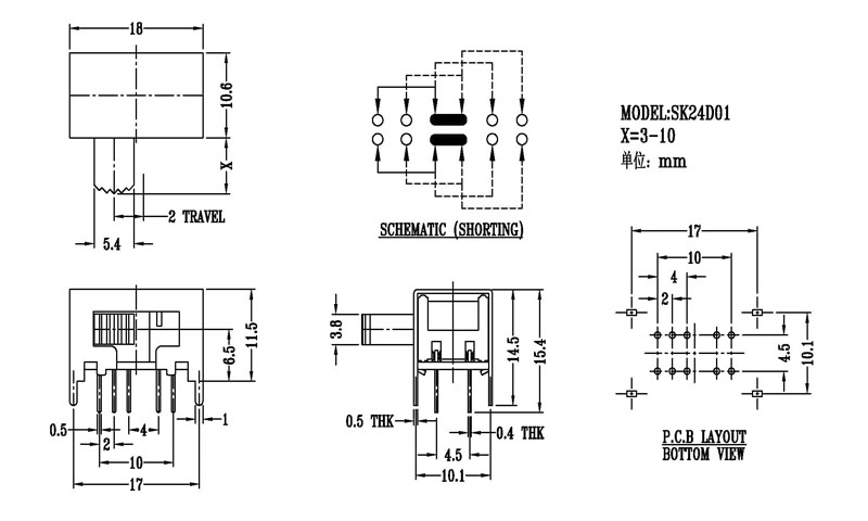 使用功率/額定值Rating:DC 50V 0.3A~1A 觸點電阻/Contact Resistance:< 100 mΩ 絕緣電阻/Insulation Resistance:≥ 100 MΩ 耐壓/Withstand Voltage:500V AC for 1 minute 使用壽命/Life cycles:10000次 操作溫度/Operationg Temperature:-16℃to+60℃ 儲存溫度/Storage Temperature:-40℃to+85℃ 符合標準/Complies with:RoHs&Reach
