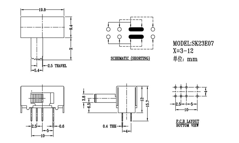 使用功率/額定值Rating:DC 50V 0.3A~1A 觸點電阻/Contact Resistance:< 100 mΩ 絕緣電阻/Insulation Resistance:≥ 100 MΩ 耐壓/Withstand Voltage:500V AC for 1 minute 使用壽命/Life cycles:10000次 操作溫度/Operationg Temperature:-16℃to+60℃ 儲存溫度/Storage Temperature:-40℃to+85℃ 符合標準/Complies with:RoHs&Reach