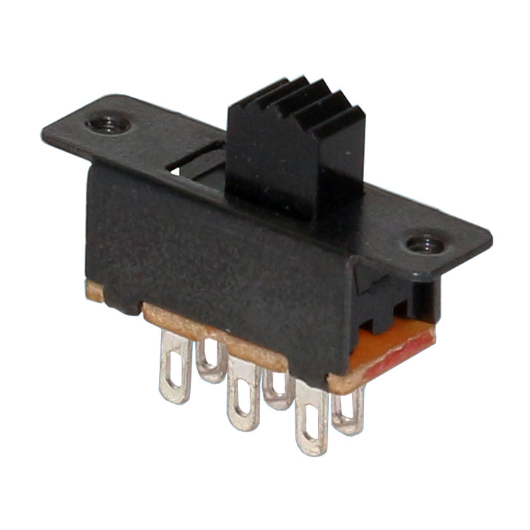 Slide Switch Main data Rating:DC 50V 0.3A~1A ContactResistance:< 100 mΩ InsulationResistance:≥ 100 MΩ Withstand Voltage:500V AC for 1 minute Operating Force:180~500gf Life cycles:10000次 Operationg Temperature:-16℃to+60℃ Storage Temperature:-40℃to+85℃ Complies with:RoHs&Reach