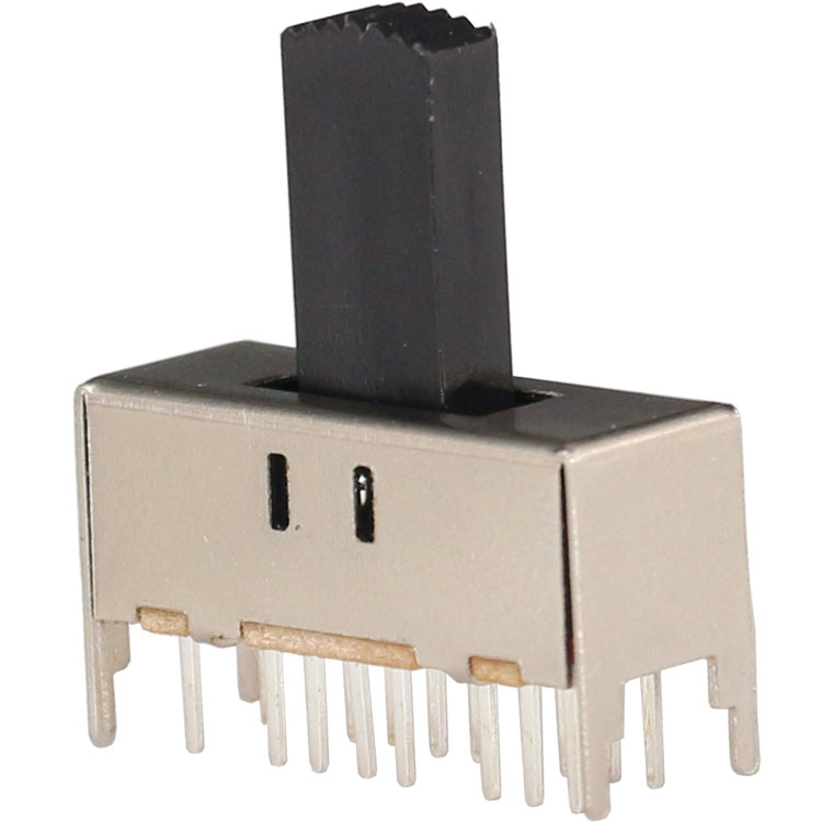 Slide Switch Main data Rating:DC 50V 0.3A~1A ContactResistance:< 100 mΩ InsulationResistance:≥ 100 MΩ Withstand Voltage:500V AC for 1 minute Operating Force:180~500gf Life cycles:10000次 Operationg Temperature:-16℃to+60℃ Storage Temperature:-40℃to+85℃ Complies with:RoHs&Reach