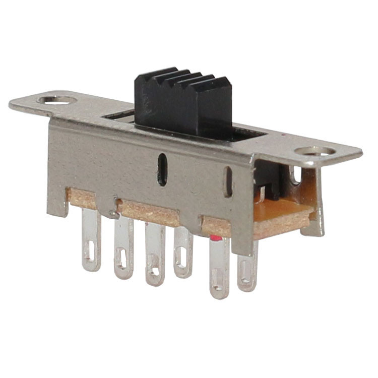 Slide Switch Main data Rating:DC 50V 0.3A~1A ContactResistance:< 100 mΩ InsulationResistance:≥ 100 MΩ Withstand Voltage:500V AC for 1 minute Operating Force:180~500gf Life cycles:10000次 Operationg Temperature:-16℃to+60℃ Storage Temperature:-40℃to+85℃ Complies with:RoHs&Reach