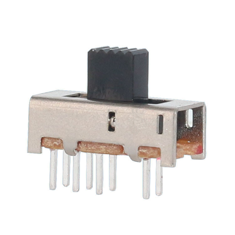 Slide Switch Main data Rating:DC 50V 0.3A~1A ContactResistance:< 100 mΩ InsulationResistance:≥ 100 MΩ Withstand Voltage:500V AC for 1 minute Operating Force:180~500gf Life cycles:10000次 Operationg Temperature:-16℃to+60℃ Storage Temperature:-40℃to+85℃ Complies with:RoHs&Reach
