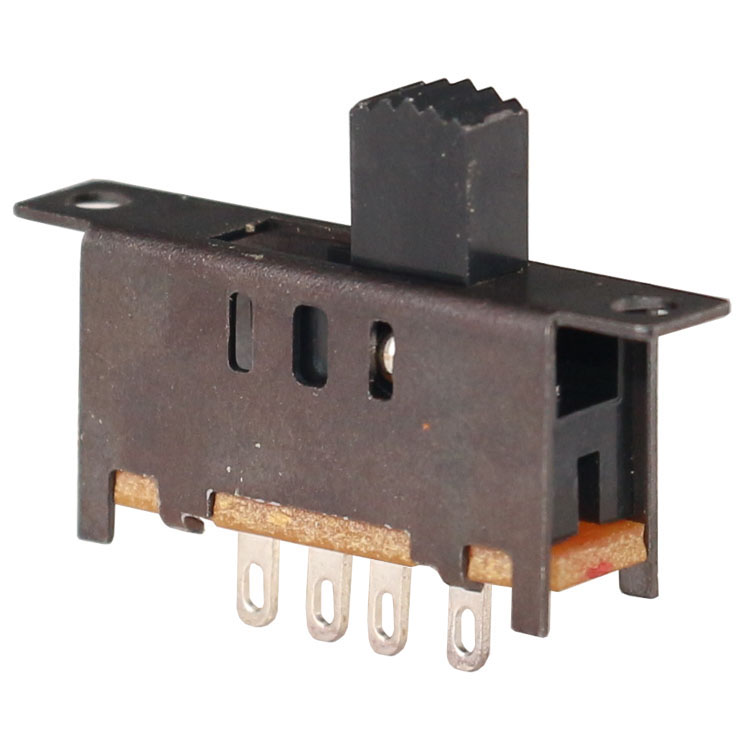 Slide Switch Main data Rating:DC 50V 0.3A~1A ContactResistance:< 100 mΩ InsulationResistance:≥ 100 MΩ Withstand Voltage:500V AC for 1 minute Operating Force:180~500gf Life cycles:10000次 Operationg Temperature:-16℃to+60℃ Storage Temperature:-40℃to+85℃ Complies with:RoHs&Reach
