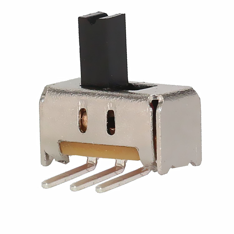 Slide Switch Main data Rating:DC 50V 0.3A~1A ContactResistance:< 100 mΩ InsulationResistance:≥ 100 MΩ Withstand Voltage:500V AC for 1 minute Operating Force:180~500gf Life cycles:10000次 Operationg Temperature:-16℃to+60℃ Storage Temperature:-40℃to+85℃ Complies with:RoHs&Reach
