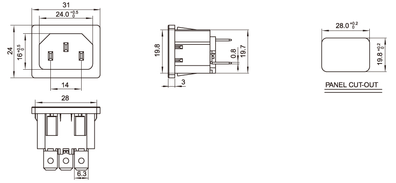 Model number: DB - 14 - : Key words: the end socket of the product, the end power socket, the pin socket, AC power socket and socket. Directions: small home appliance character power supply;Main engine box socket;Power socket of the battery car;Electrical socket 23 * 18 feet inches: Current voltage: 10a 250V.