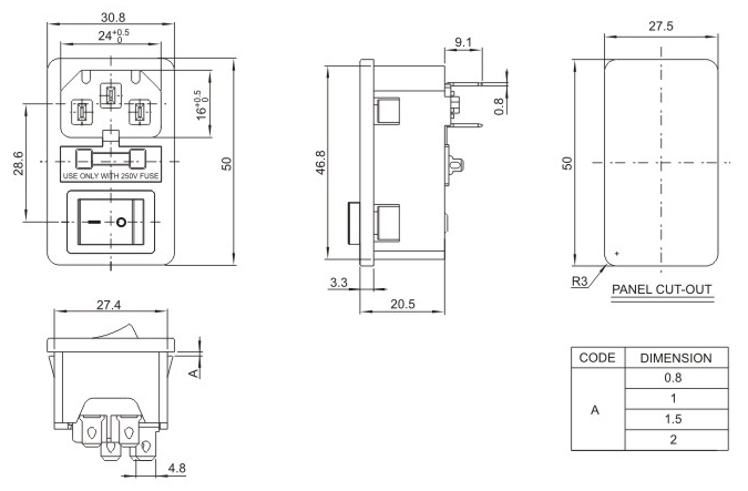 Model number: DB-14-F3 : Key words: the end socket of the product, the end power socket, the pin socket, AC power socket and socket. Directions: small home appliance character power supply;Main engine box socket;Power socket of the battery car;Electrical socket 30.8*50 feet inches: Current voltage: 10a 250V.
