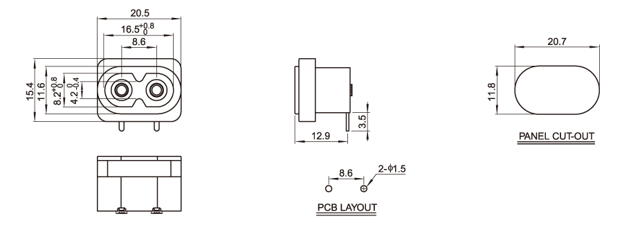 Model number: DB - 8-15 p9b: Key words: octagon socket: octagon socket;Adapter power socket Power adapter: laptop power supply;Medical device power supply;The charger. Or: 20.5 * 15.4 Current voltage: 2.5a 250V