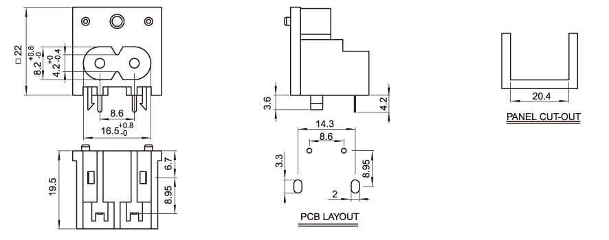 Model number: DB-8-20R5: Key words: octagon socket: octagon socket;Adapter power socket Power adapter: laptop power supply;Medical device power supply;The charger. Or: 22 * 19.5 Current voltage: 2.5a 250V