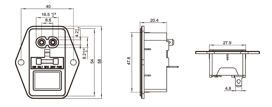 Model number: DB - 8 - F: Key words: octagon socket: octagon socket;Adapter power socket Power adapter: laptop power supply;Medical device power supply;The charger. 40 * 58 feet inches: Current voltage: 2.5a 250V