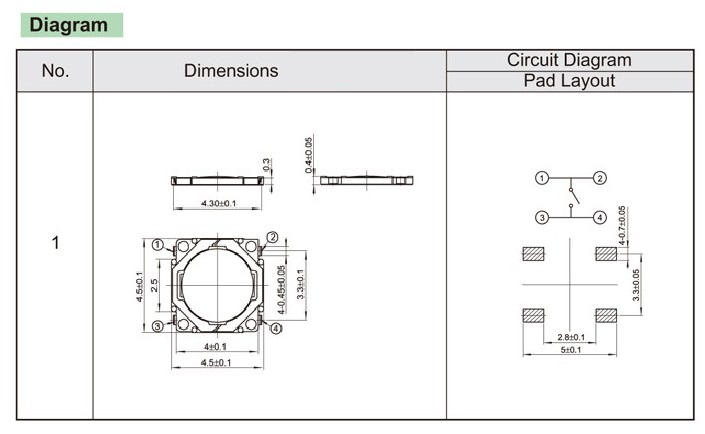 4.5×4.8×0.5 Light touch switch, light touch buttons, patch type light touch switch, pin type light touch switch, miniature light touch switch