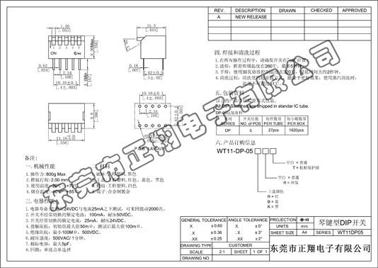 Pitch 2.54mm pitch, sliding in-line switch, is two-state. Compared to the KG series, its actuators are only half as powerful. The actuator is 4/6Nylon, UL94V-0, White; the cover material is PPS, UL94V-0, Black. It is also gold-plated contacts, temperature range -40 to 85 degrees, suitable for industrial grade