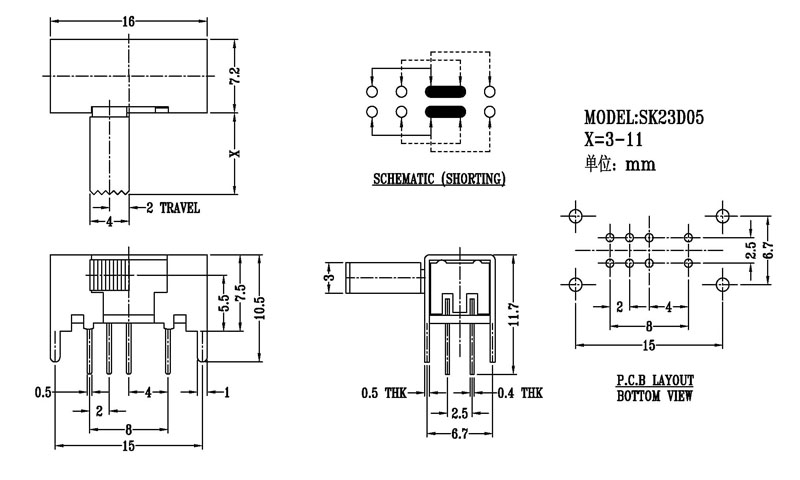 使用功率/額定值Rating:DC 50V 0.3A~1A 觸點電阻/Contact Resistance:< 100 mΩ 絕緣電阻/Insulation Resistance:≥ 100 MΩ 耐壓/Withstand Voltage:500V AC for 1 minute 使用壽命/Life cycles:10000次 操作溫度/Operationg Temperature:-16℃to+60℃ 儲存溫度/Storage Temperature:-40℃to+85℃ 符合標準/Complies with:RoHs&Reach