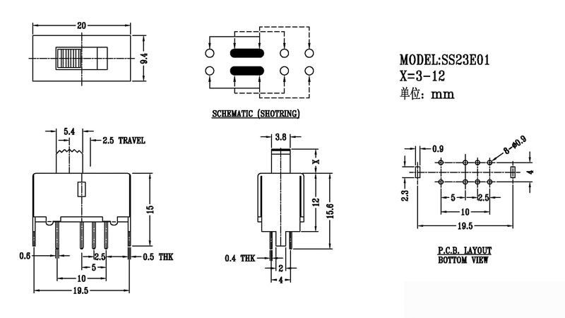 正拨拨动开关主要技術參數 使用功率/額定值:DC 50V 0.3A~1A 觸點電阻:< 100 mΩ 絕緣電阻:≥ 100 MΩ 耐壓:500V AC for 1 minute 撥動力:180~500gf 使用壽命:10000次 操作溫度:-16℃to+60℃ 儲存溫度:-40℃to+85℃ 符合標準:RoHs&Reach