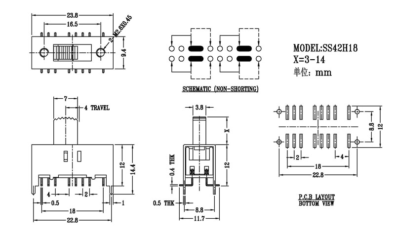 正拨拨动开关主要技術參數 使用功率/額定值:DC 50V 0.3A~1A 觸點電阻:< 100 mΩ 絕緣電阻:≥ 100 MΩ 耐壓:500V AC for 1 minute 撥動力:180~500gf 使用壽命:10000次 操作溫度:-16℃to+60℃ 儲存溫度:-40℃to+85℃ 符合標準:RoHs&Reach