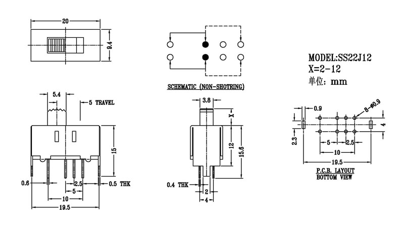 正拨拨动开关主要技術參數 使用功率/額定值:DC 50V 0.3A~1A 觸點電阻:< 100 mΩ 絕緣電阻:≥ 100 MΩ 耐壓:500V AC for 1 minute 撥動力:180~500gf 使用壽命:10000次 操作溫度:-16℃to+60℃ 儲存溫度:-40℃to+85℃ 符合標準:RoHs&Reach