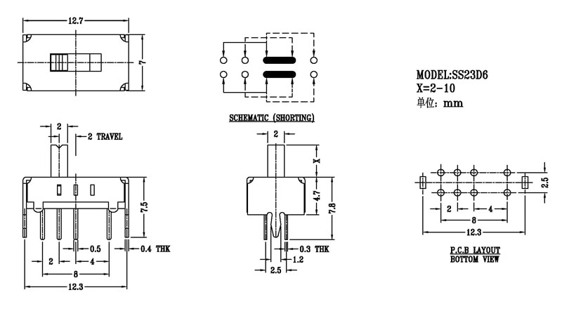 正拨拨动开关主要技術參數 使用功率/額定值:DC 50V 0.3A~1A 觸點電阻:< 100 mΩ 絕緣電阻:≥ 100 MΩ 耐壓:500V AC for 1 minute 撥動力:180~500gf 使用壽命:10000次 操作溫度:-16℃to+60℃ 儲存溫度:-40℃to+85℃ 符合標準:RoHs&Reach