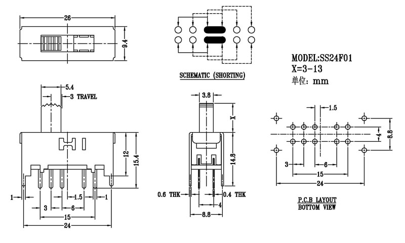 正拨拨动开关主要技術參數 使用功率/額定值:DC 50V 0.3A~1A 觸點電阻:< 100 mΩ 絕緣電阻:≥ 100 MΩ 耐壓:500V AC for 1 minute 撥動力:180~500gf 使用壽命:10000次 操作溫度:-16℃to+60℃ 儲存溫度:-40℃to+85℃ 符合標準:RoHs&Reach