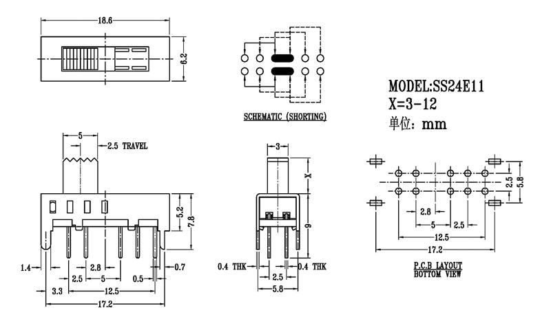 正拨拨动开关主要技術參數 使用功率/額定值:DC 50V 0.3A~1A 觸點電阻:< 100 mΩ 絕緣電阻:≥ 100 MΩ 耐壓:500V AC for 1 minute 撥動力:180~500gf 使用壽命:10000次 操作溫度:-16℃to+60℃ 儲存溫度:-40℃to+85℃ 符合標準:RoHs&Reach