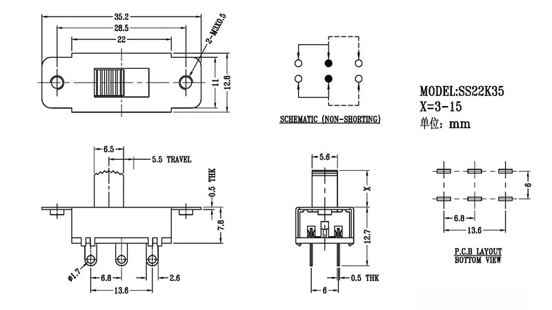 正拨拨动开关主要技術參數 使用功率/額定值:DC 50V 0.3A~1A 觸點電阻:< 100 mΩ 絕緣電阻:≥ 100 MΩ 耐壓:500V AC for 1 minute 撥動力:180~500gf 使用壽命:10000次 操作溫度:-16℃to+60℃ 儲存溫度:-40℃to+85℃ 符合標準:RoHs&Reach