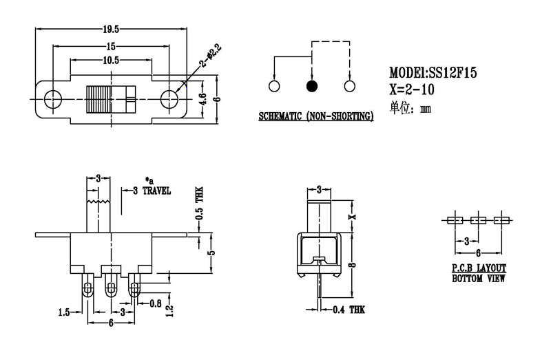 正拨拨动开关主要技術參數 使用功率/額定值:DC 50V 0.3A~1A 觸點電阻:< 100 mΩ 絕緣電阻:≥ 100 MΩ 耐壓:500V AC for 1 minute 撥動力:180~500gf 使用壽命:10000次 操作溫度:-16℃to+60℃ 儲存溫度:-40℃to+85℃ 符合標準:RoHs&Reach