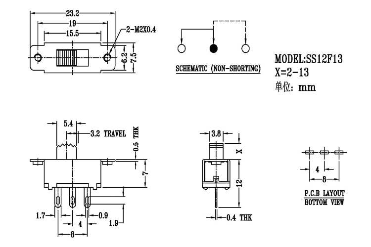 正拨拨动开关主要技術參數 使用功率/額定值:DC 50V 0.3A~1A 觸點電阻:< 100 mΩ 絕緣電阻:≥ 100 MΩ 耐壓:500V AC for 1 minute 撥動力:180~500gf 使用壽命:10000次 操作溫度:-16℃to+60℃ 儲存溫度:-40℃to+85℃ 符合標準:RoHs&Reach