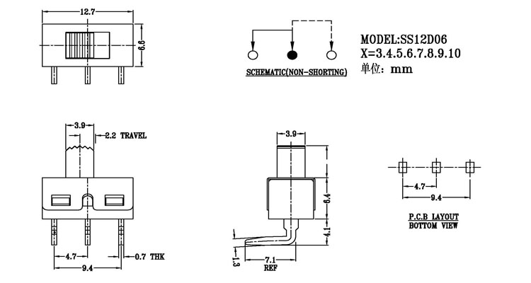 正拨拨动开关主要技術參數 使用功率/額定值:DC 50V 0.3A~1A 觸點電阻:< 100 mΩ 絕緣電阻:≥ 100 MΩ 耐壓:500V AC for 1 minute 撥動力:180~500gf 使用壽命:10000次 操作溫度:-16℃to+60℃ 儲存溫度:-40℃to+85℃ 符合標準:RoHs&Reach