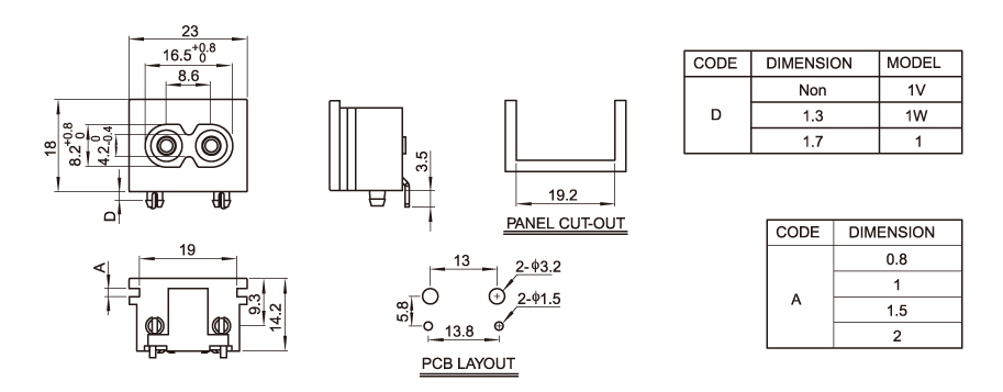 型 号:DB-8-1P2: 关健词:八字插座:八字尾插座;适配器电源插座 用 途:电源适配器:笔记本电源;医疗器械电源;充电器; 尺 寸:23*18 电流电压:2.5A 250V