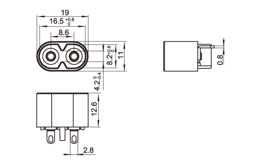 型 号:DB-8-5ES1: 关健词:八字插座:八字尾插座;适配器电源插座 用 途:电源适配器:笔记本电源;医疗器械电源;充电器; 尺 寸:19*11 电流电压:2.5A 250V