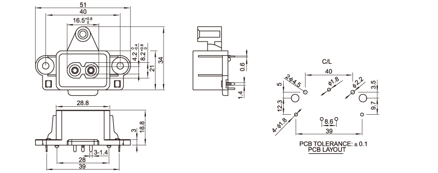 型 号:DB-8-22P29: 关健词:八字插座:八字尾插座;适配器电源插座 用 途:电源适配器:笔记本电源;医疗器械电源;充电器; 尺 寸:51*34 电流电压:2.5A 250V