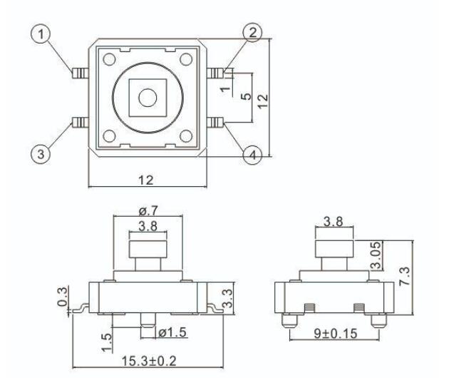 特长 ◆ 开关供给为径向贴纸方式。 ◆ 输出端子的一部分可作为跨接引线使用,电路设计简单。 ◆ 标准按钮可选。 ◆ 贴片式可选。