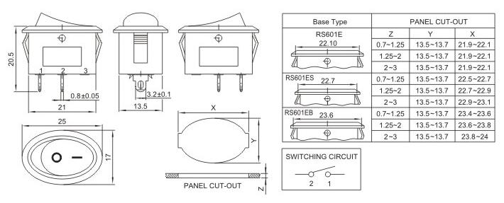 15*21二档小角 船型开关 跷板开关 IO电源开关 1.额定工作电压、电流Rating 3A/6A/15A 250V 2.使用温度范围Temperature -25+85℃ 3.接触电阻Contact Resistance <0.03Ω 4.动作力Actuating Force 1.3+0.5N 5.绝缘电阻Insulation Resistance >100MΩ 6.寿命(switching Life) 10000次
