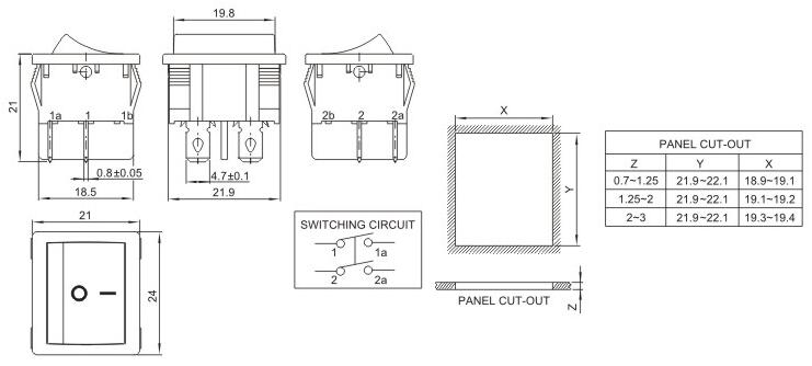 15*21二档三角 船型开关 跷板开关 IO电源开关 1.额定工作电压、电流Rating 3A/6A/15A 250V 2.使用温度范围Temperature -25+85℃ 3.接触电阻Contact Resistance <0.03Ω 4.动作力Actuating Force 1.3+0.5N 5.绝缘电阻Insulation Resistance >100MΩ 6.寿命(switching Life) 10000次